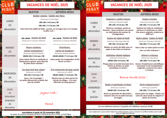 Programme des vacances de Noel 2025
