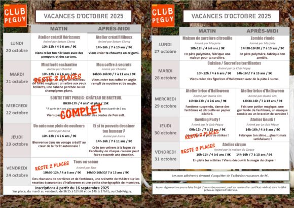 Le programme des vacances d’octobre 2025 vous propose des activités créatives, des sorties, de la cuisine….de quoi régaler vos enfants.